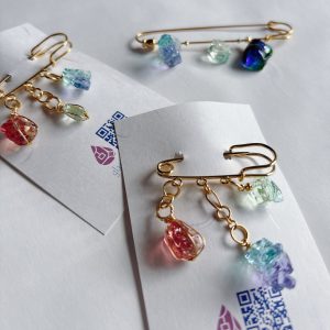 ガラスアートイロタスの定番商品「虹のオブジェ」。その制作過程で、わずかな形状やサイズの違いからオブジェとしては完成品にならなかった素材を、ブローチとして新たに生まれ変わらせました。 丁寧にリサイズし、再燃焼することで、 […]