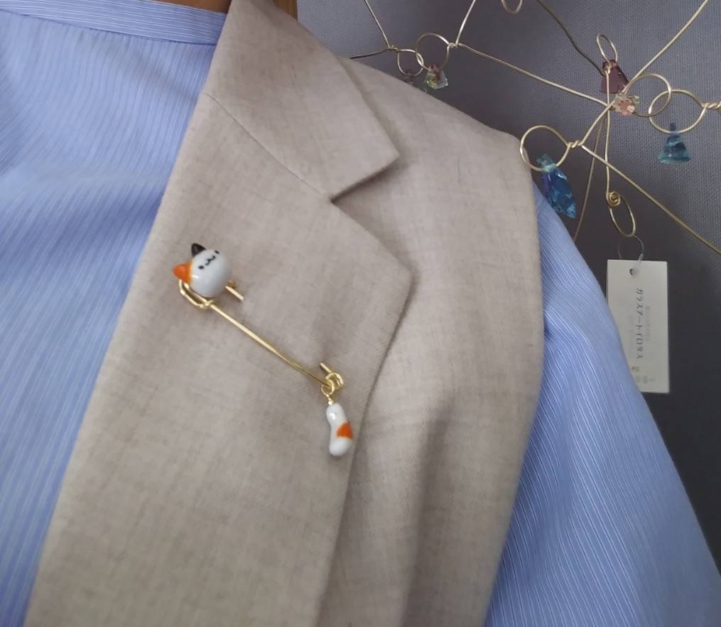 こちらの可愛らしい猫ブローチ、お客様が素敵に着けてくださいました♪