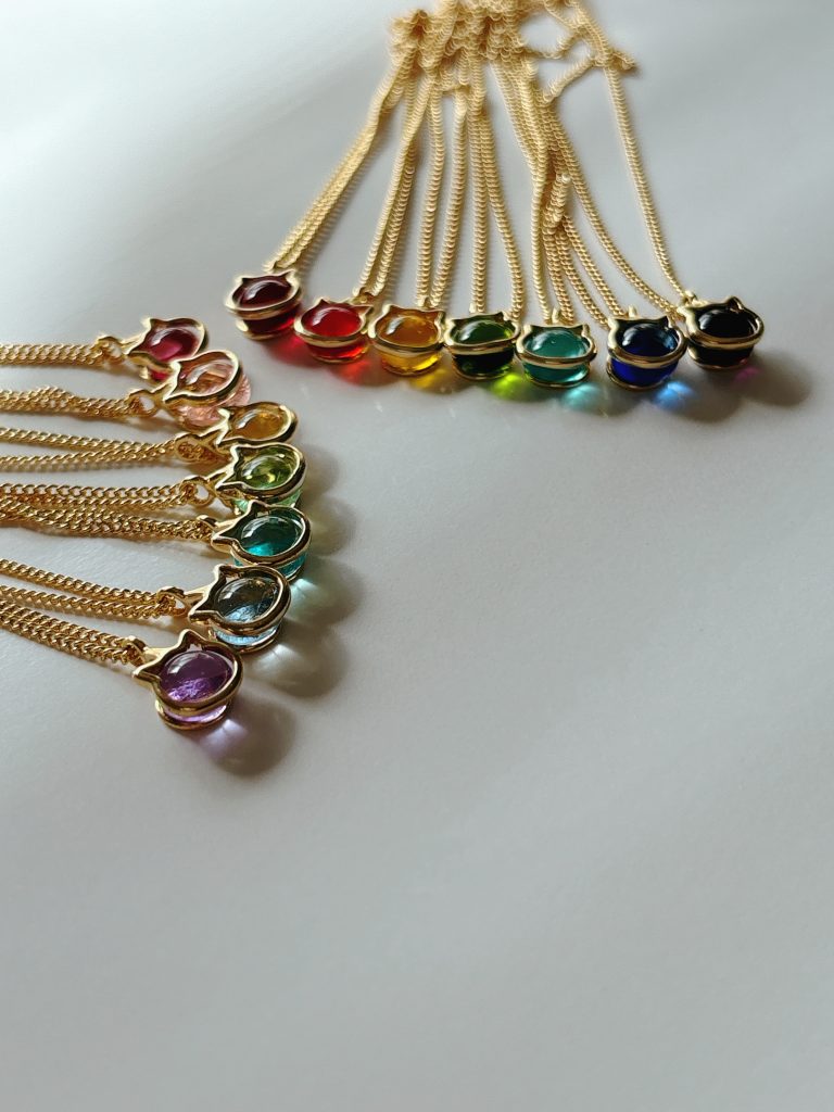 イロタスといえば、虹のオブジェを連想される方も多いかと思いますが、その7色を使った可愛いネコちゃんプチネックレスも納品しております。